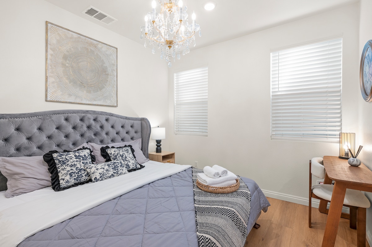 Newly remodeled bungalow minutes from Fairplex & colleges—clean, bright, airy with two private en-suite bedrooms, self check‑in & fast Wi‑Fi. - Two en-suite bedrooms, perfect for friends or families - Ideal for campus visitors, event travelers, or business guests - Self check-in with keypad; reliable Wi‑Fi - Open living area—sunlit, modern décor, high cleanliness - Short drive to Claremont Colleges, Cal Poly Pomona, and Fairplex - Cost-effective alternative accommodations to Disney/Knott's