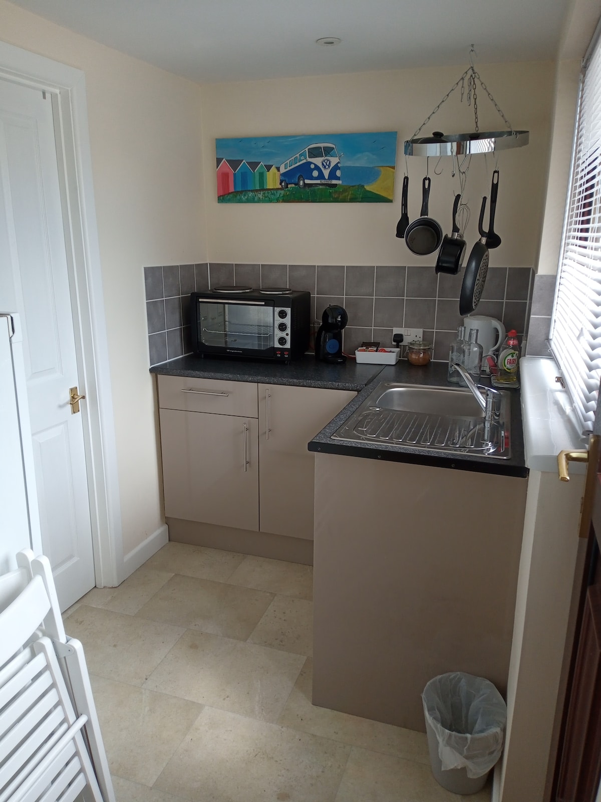 The annexe is a recently renovated self-contained 1-bedroom apartment in a town centre location, ideally situated in a quiet residential cul-de-sac and includes an allocated parking space. The property is completely separate from the main house with a private entrance and outside space available on the sun terrace in our private garden.