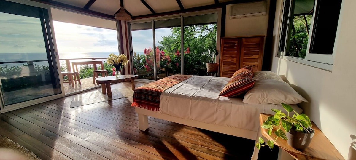 Coastal Vista Casa | Santa Teresa Coast Views is a private, high-end luxury suite in Mal País with panoramic Santa Teresa coastline and jungle valley views. Designed for romance or focused solo stays, it features a plunge pool, gourmet kitchen, and seamless indoor-outdoor living in a secure, tranquil setting. Wake to birds and wildlife, then reach beaches, surf, and dining in minutes—ideal for couples or a solo digital nomad seeking privacy and inspiration.