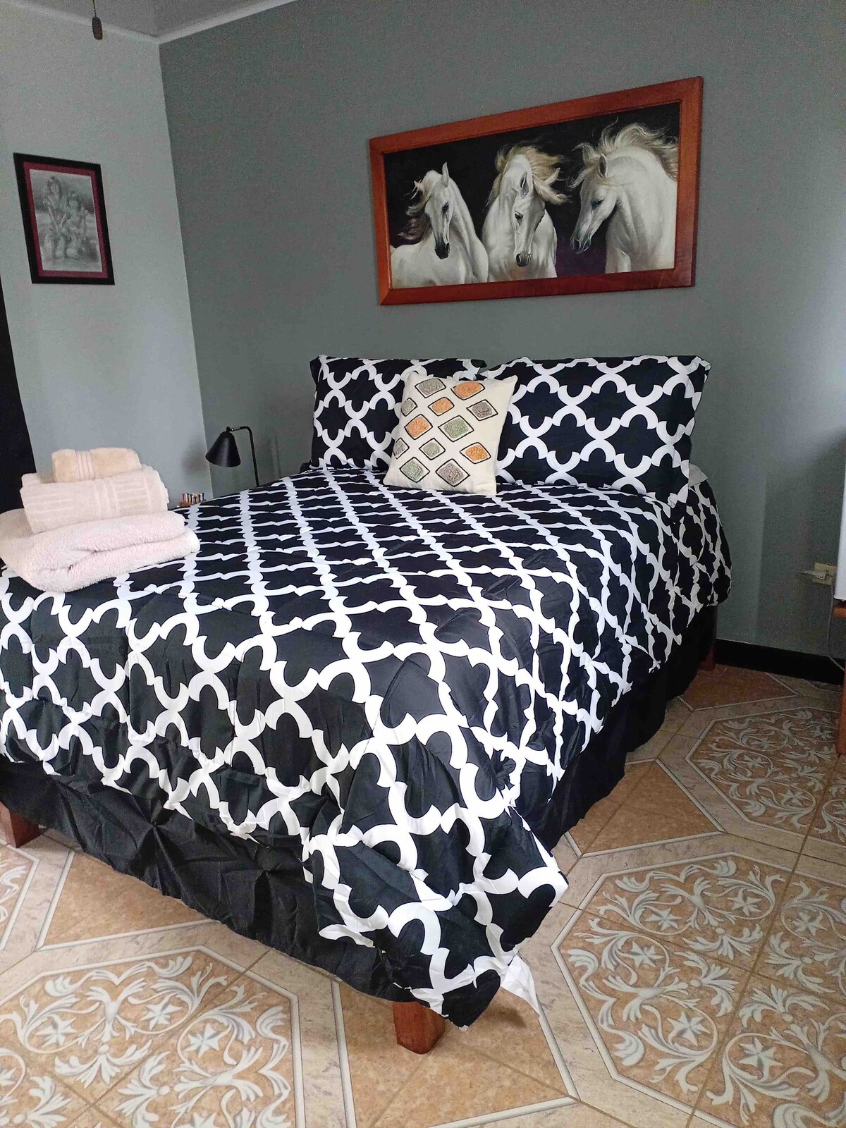 Suite with separate entrance: covered parking, double bed, bathroom, kitchenette and desk. Your personal space in the heart of David. It has split air conditioning, a ceiling fan, a TV with Netflix access, free WiFi internet, blackout curtains, a water reserve tank, hot water, a kitchenette equipped with an electric stove, a refrigerator, a coffee maker, a microwave, and basic utensils. It does not have a laundry room, electric generator, or soundproofing.
