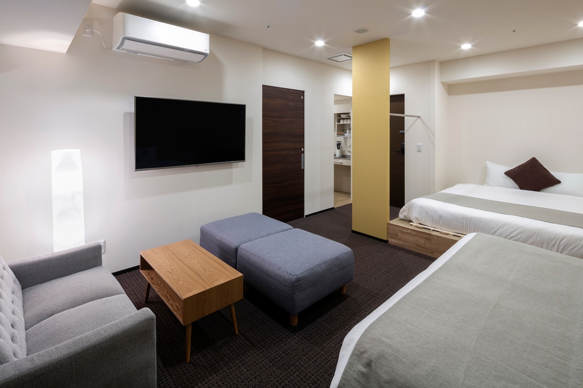 Welcome to【The Knot Sapporo】, a modern hotel with convenient access from the station. All of the rooms are designed to give you a sense of comfort and warmth based on the theme of Modern & Nature, with all of the rooms featuring THE KNOT's original lighting, Hokkaido materials such as Donan cedar walls and Sapporo soft stone night tables, and carefully selected amenities. We have designed the facility so that guests can spend their time in a relaxing atmosphere.