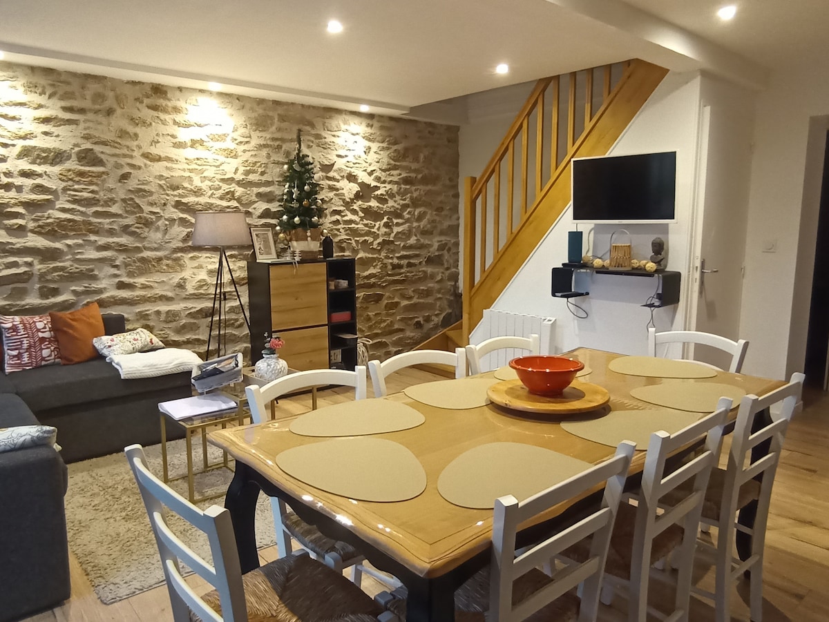 Welcome to the Repaire des Écoliers, a former village school renovated into a spacious and friendly gîte with an 80 m2 living room. Its private indoor pool, heated to 29°C to enjoy it all year round. Great for a stay with friends and family thanks to the many activities on site (billiards, foosball, darts) and nearby (Puy du Fou, water sports center, etc.). Located in the heart of a small village, peace and quiet are required to respect the neighborhood