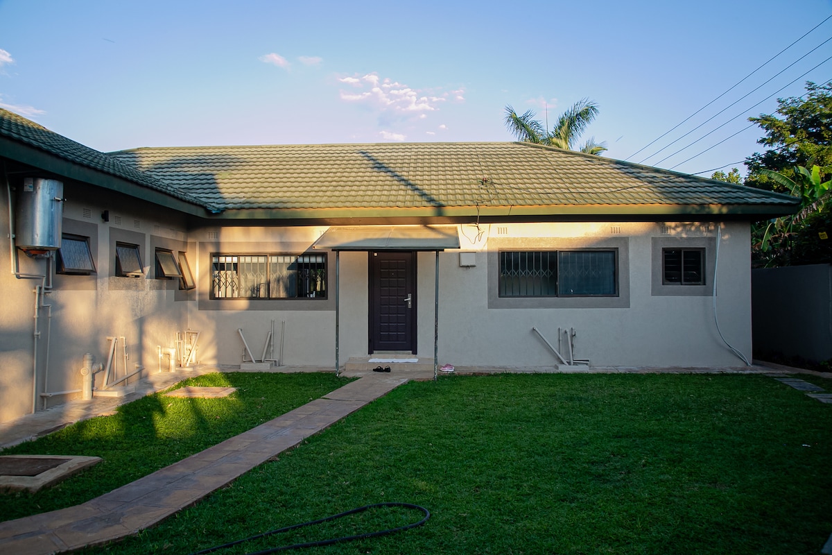 Central, yet quiet, serene, spacious house with mature, lush gardens.Enjoy the beautiful private pool, relax in the gazebo, listen to the birds and watch the stars at night by the fire pit on cool evenings. The house comes with daytime staff who can help cook your meals, do laundry and ensure you have a comfortable stay, 24/7 solar power for all essentials, starlink wifi, high end security systems and its own private borehole. Accessible from Twin Palm or Great East Road. Close to the airport.