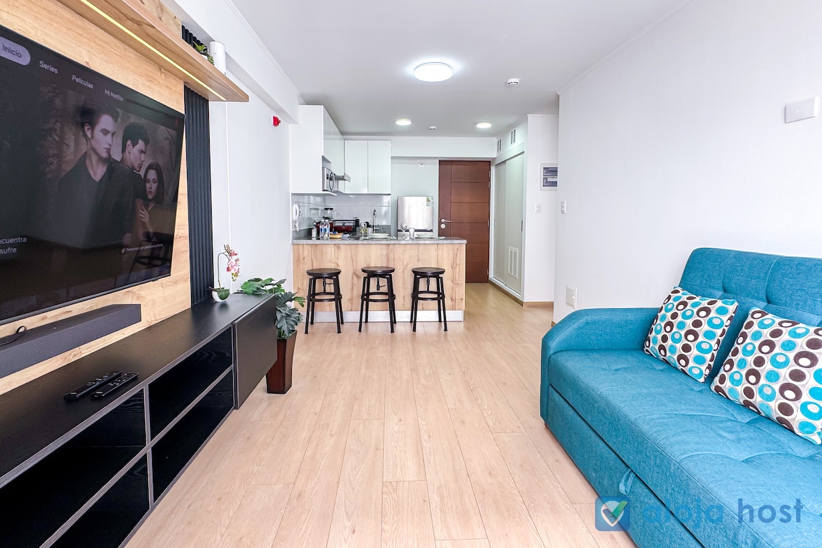 Welcome to our cozy apartment in Barranco! Enjoy: • Privileged location: Close to Miraflores, in a quiet and safe area, a few minutes walk from restaurants, bars and museums. • Comfort and style: Minimalist design, fully furnished, with equipped kitchen and fan. • Total entertainment: 50-inch Smart TV with high-speed internet. • Personalized attention: Constant communication for an exceptional experience. We're waiting for you!