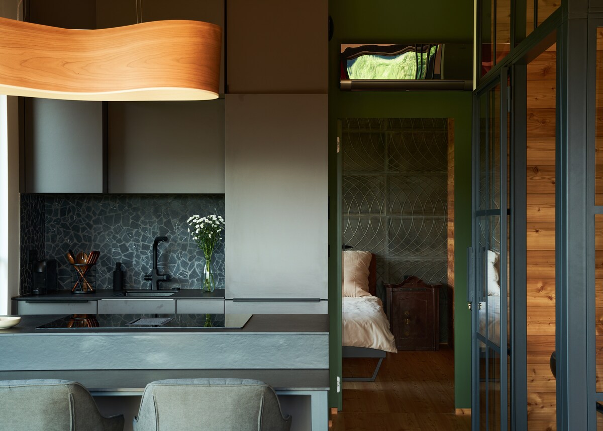 Relax and unwind in this peaceful, stylish space. The house is fully equipped, cozy and has beautiful views in every direction. The climate is created by original paintings. It has a large terrace. The Painter's House is located in a large garden with ponds and a small forest. Guests have access to recreation areas in the garden, walking paths, a playground and a fire pits. There are beautiful lakes and forests in the area. This is the perfect place for people who value the closeness of nature.