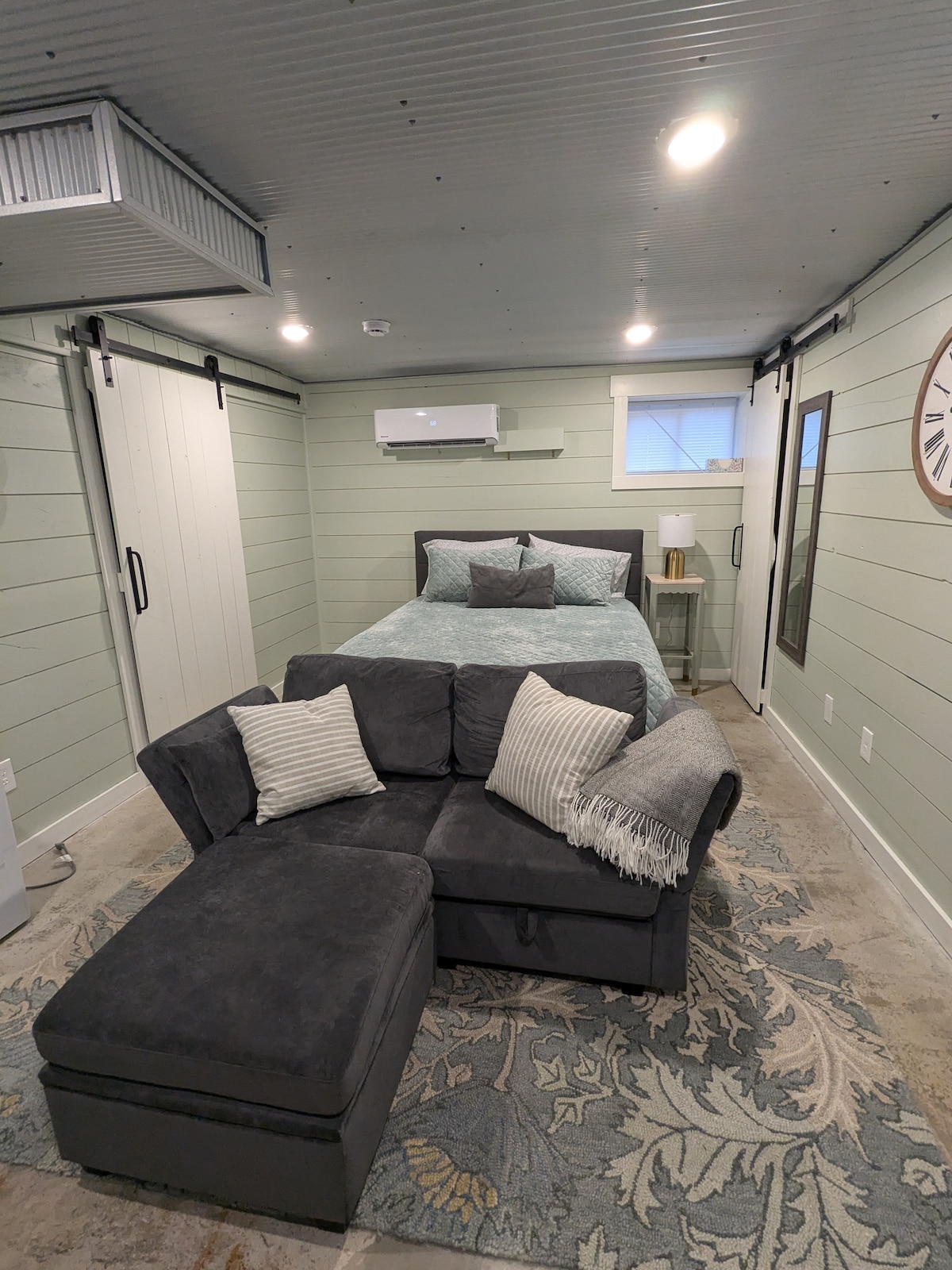 Down a winding country road only 10 minutes from Interstate 24 is a clean newly renovated studio suite in a historic building. The quaint little town of Trenton, Ky a perfect get away town gives a suite with a modern industrial feel and a view of the historic town. It is located above the Traveler’s Lantern Market & Cafe, a full scale coffee and sandwich cafe with handmade farmhouse decor. Trenton also has a boutique, salon, sewing shops and antique store. And a beautiful full park to stroll in!
