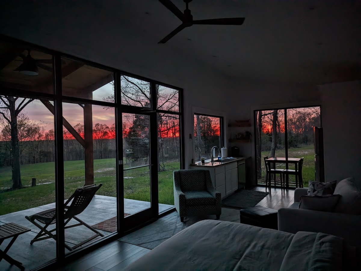 Enjoy beautiful views of nature when you stay in this unique place! Large windows on two sides of the home make it a truly serene space. Whether you are looking to walk trails on the property or enjoy the scenery in the comfort of home, you will find serenity during your stay here. If you'd like to bring a well-behaved dog, check out our other very similar rental! www.airbnb.com/h/3907witty