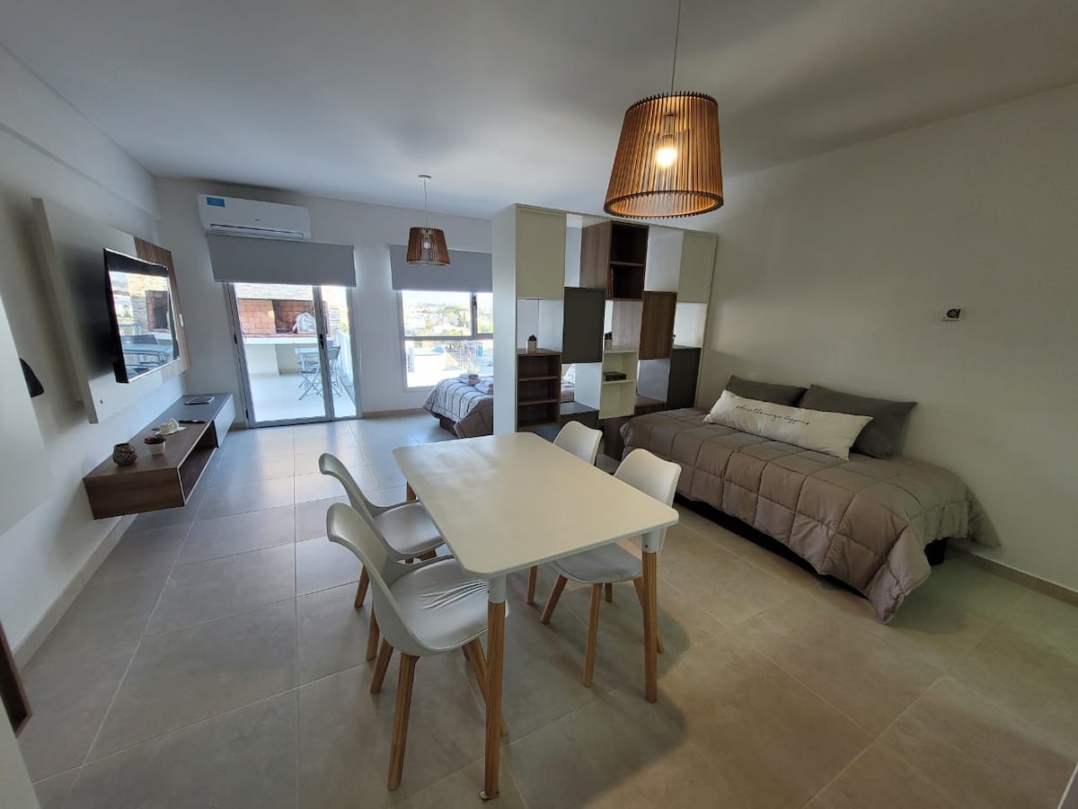 Welcome to our beautiful and cozy dream apartment, located in an emblematic corner on the city's central waterfront. A perfect stay that will allow you to combine nature with the best dining and shopping options. Located in front of the sea and shopping, with unique views of the new gulf where year after year the southern right whale visits us, giving us the possibility to enjoy an unmissable spectacle.