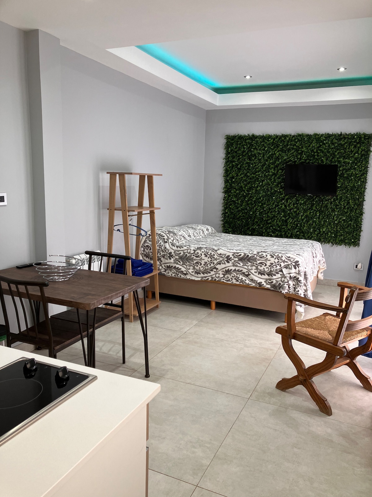 Your family will be close to everything if you stay in this centrally located accommodation. New one-bedroom apartment with double bed and living room with very comfortable sofa bed. Sea view from the balcony, full kitchen with microwave, blender, toaster, stove with oven, full dishes, sandwich maker, juicer, coffee maker, electric kettle, refrigerator with freezer, emergency lights, fire extinguisher, umbrella, beach chairs, smart TV, wifi, cable, DVD, audio equipment, linens, etc. Pets are not allowed.