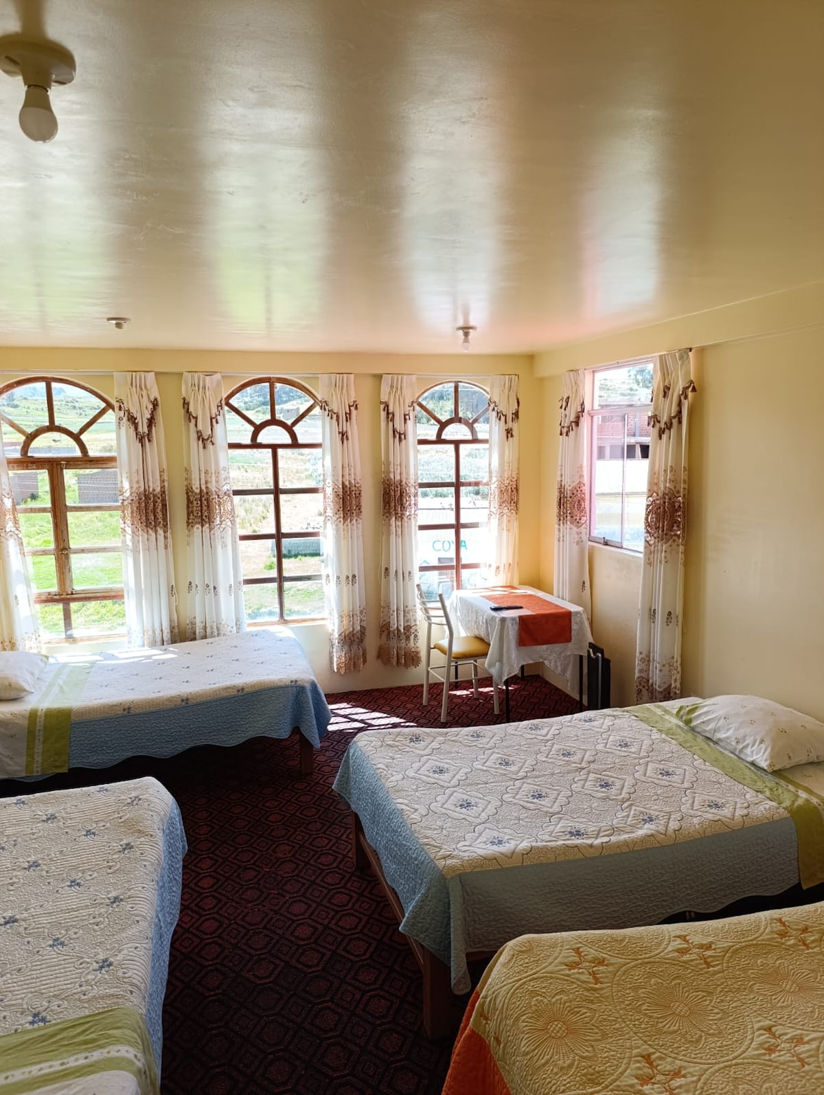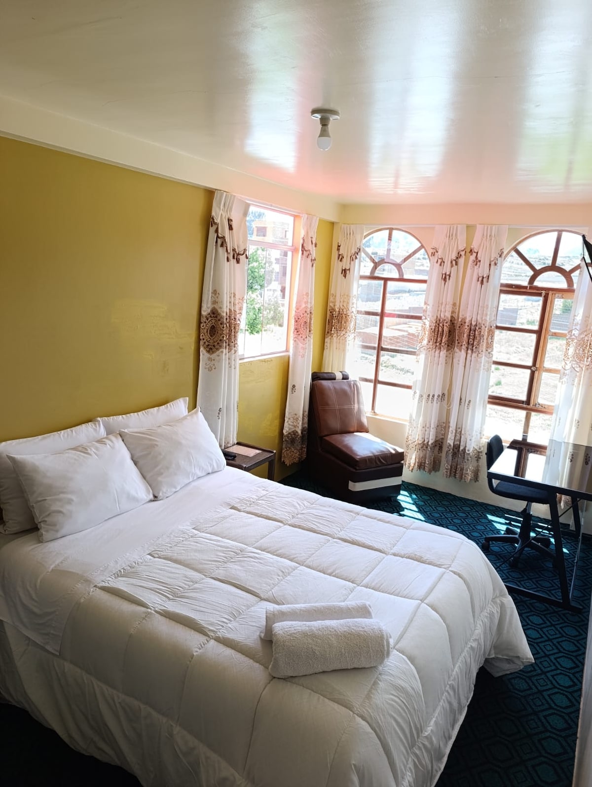 Hotel Summita Matrimonial Senior offers accommodation for 3 people with an American breakfast à la carte. In the room, passengers have access to a private bathroom, hot water 24/7, plasma TV, FREE Wifi, liquid, toilet soap, toilet paper, towels, security, independent key, free tourist information to visit Lake Titicaca. Other activities.