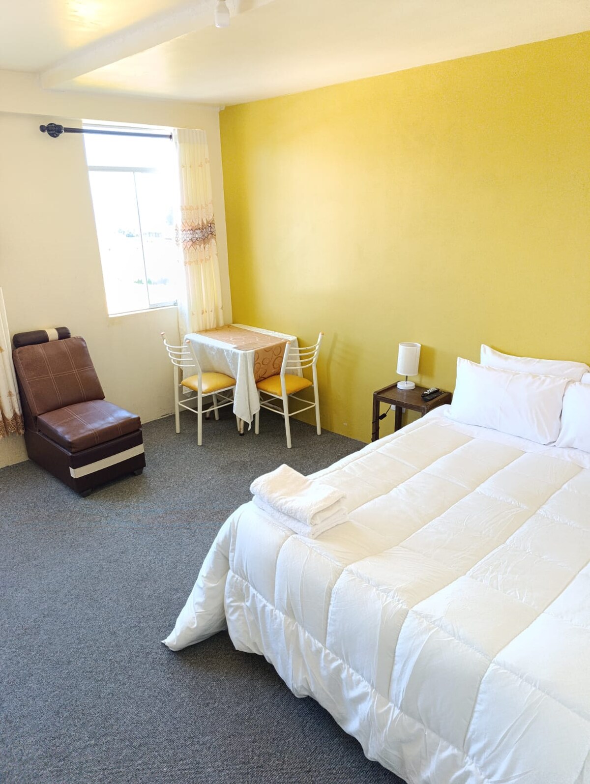 Hotel Summita Matrimonial Superior Vip ofrece alojamiento para 2 personas con desayuno incluído. En la habitación los pasajeros tienen acceso a baño privado, agua caliente 24/7, TV plasma, Wiffi GRATIS, Articulos como shampu liquido,jabon tocador, papel higienico, toallas, seguridad, llave independiente, informacion turistica gratis. Otras actividades. Ademas el hotel Summita tiene restaurant a la carta y parking GRATIS