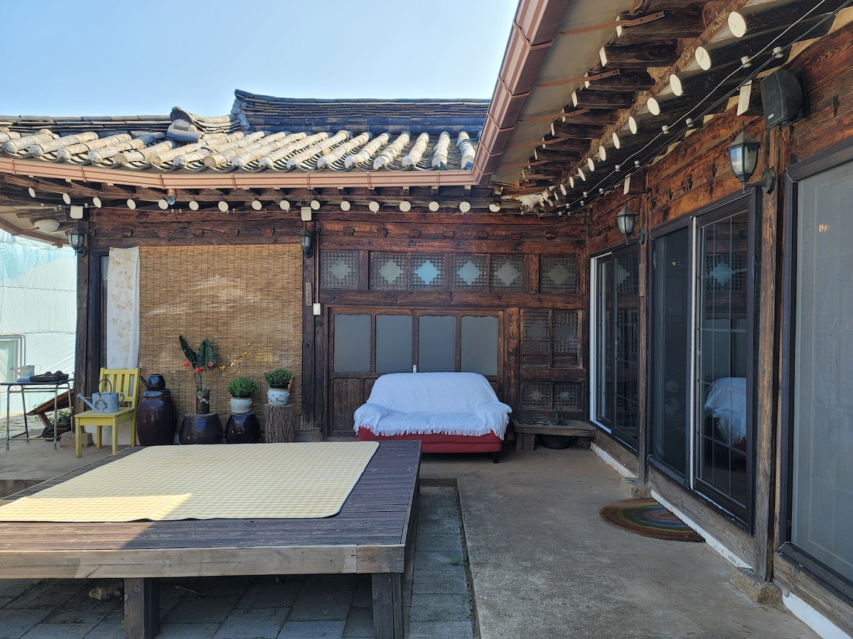 Gonghyu Hanok is a hanok accommodation operated as a spacious private house suitable for the whole family to stay in Wanju-gun, a clean area near Jeonju. Sharing gives you a complete and peaceful rest in nature when everyone is tired. It is a traditional hanok in Wanju, which is full of private places and fun things, but we have eliminated the inconvenience and created a trendy space. I think that family, lovers, and friends will all be able to make satisfying memories. Nearby valleys, Dulle-gil, various experiences, food, and amenities offer new experiences. Hanok Gongyeo will be waiting for you.