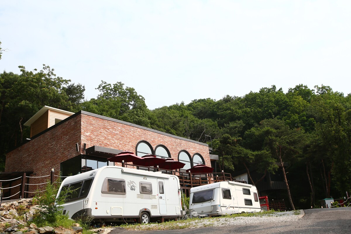 This accommodation is located in a blueberry and aronia farm. The property is located in a mountain overlooking blueberry fields. You can enjoy rural experiences such as blueberry harvesting, blueberry chocolate making, and jam making. Blueberry harvesting experience is available from June 20 to early August, and blueberry chocolate making and jam making experience are available all year round. You can spend a relaxing day in the forest overlooking the farm. Cooking is not allowed in the camping car, and you can use the shared kitchen. The shared kitchen is equipped with all tableware and pots, so you can use it freely.