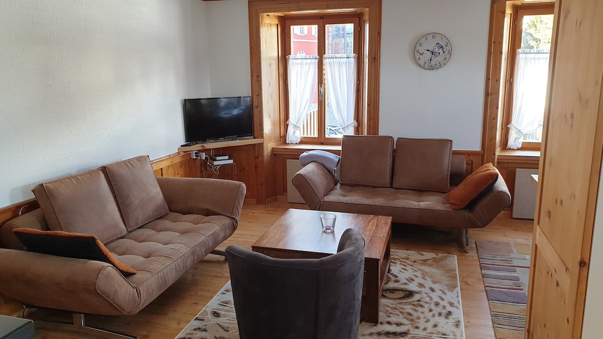 Location: The 5-family house, built around 1900, is located in a sunny, central location with very good public transport connections, close to the toboggan run, entry portal to ski/hiking/bike areas Pradaschier-Lenzerheide-Arosa, post bus stop, post office, shops and restaurants, not far from ski lift, ski slope etc.