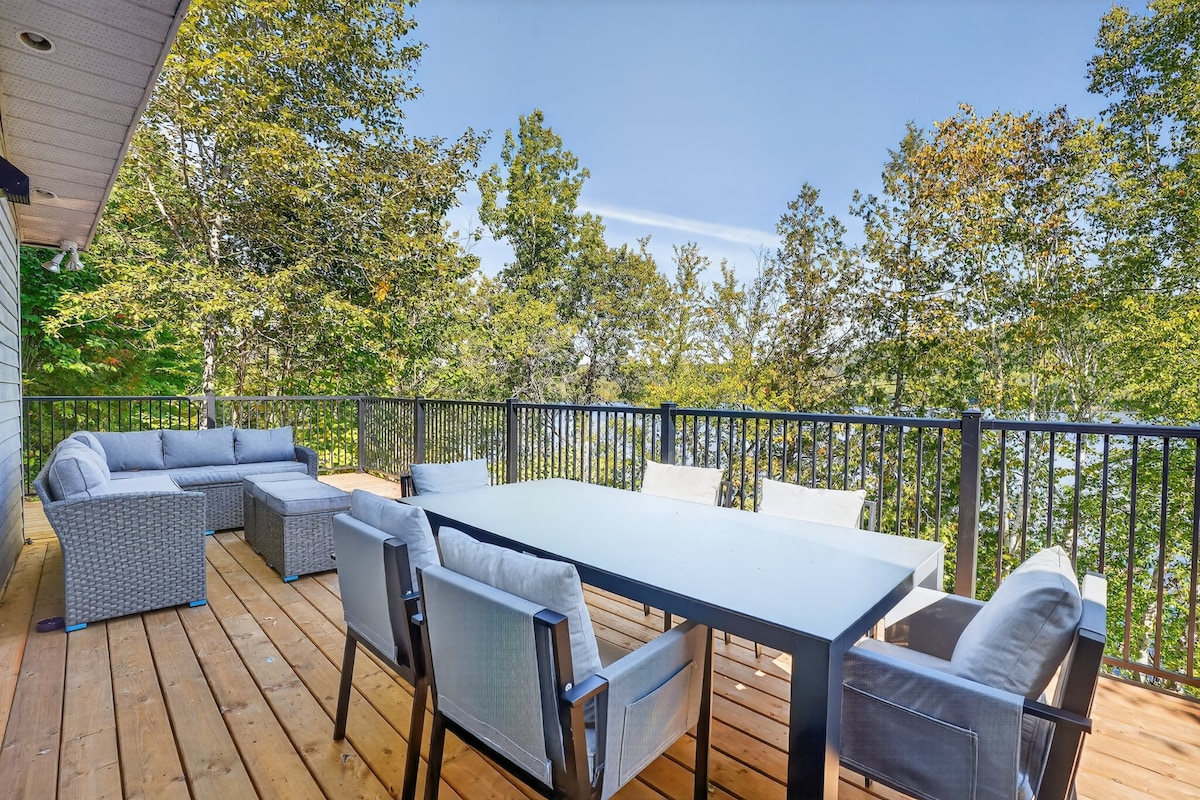 Perfect nature retreat in the heart of the Laurentian. Discover this unique Canadian log home built by local prestige company Harkins. Peaceful clear water lake directly in front of this hidden gem. ♦ Indoor wood fireplace next to comfy living room & smart TV ♦ Two Spacious Bedrooms with King & Queen bed ♦ Private Natural Lake Access ♦ Balcony with BBQ. Fire Pit ♦ Pure intimacy, no neighbours close ♦ Work desk and Wi-Fi