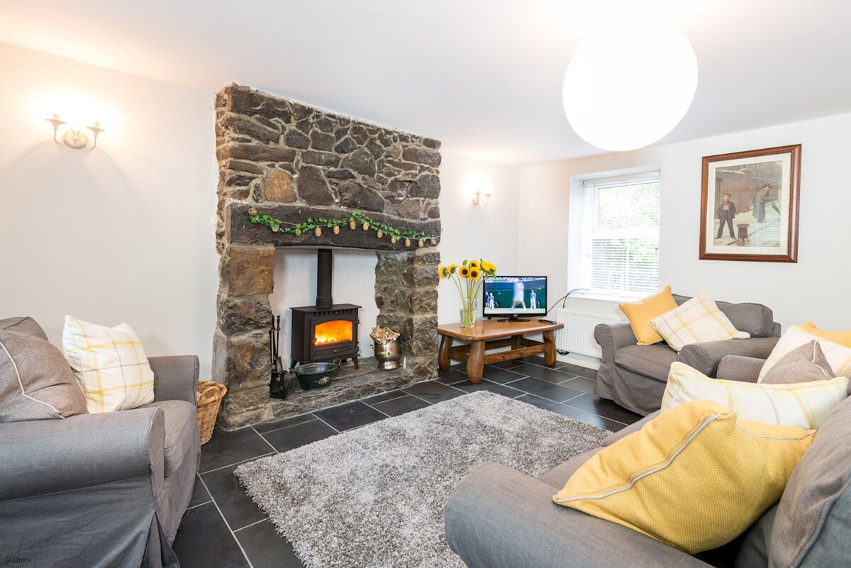 You're assured a warm welcome to this beautifully restored small barn, now a cosy cottage with exclusive use of all year round hot tub! Stunning location bordering Snowdonia (10 mins walk to Park). On clear days Snowdon, Yr Wyddfa, herself is in full view. Free Electric car charge. Close to castles, Llyn Peninsula, much beautiful coastline, stone's throw from Anglesey & more! Suitable for couples/one individual. Come, pamper yourself on a restorative break, explore a glorious area, North Wales!