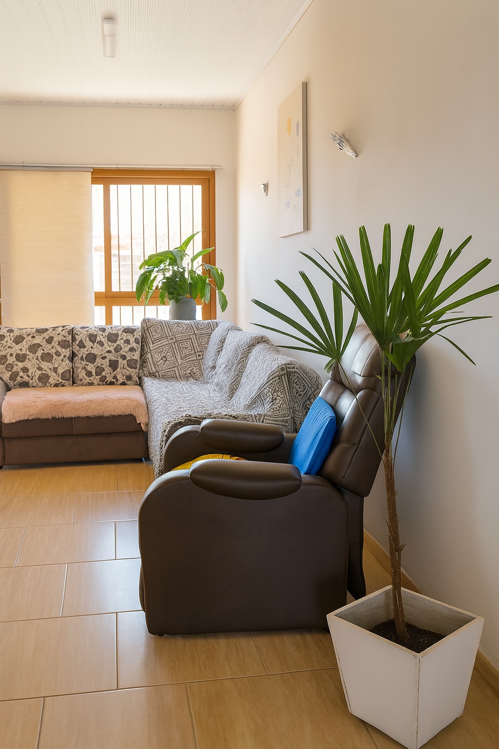 5-minute drive to the beach and 7 to the city center. The house has Wi-Fi, TV with access to cable channels, 2 bedrooms, 1 bathroom, living room and kitchen. 1 bedroom with a double bed and an auxiliary single bed, 1 bedroom with a bunk bed, double bed on the bottom and single bed on top, 1 auxiliary single bed, + an extra double mattress and two fans. Full kitchen with stove, refrigerator, microwave, coffee maker, toaster, blender, electric kettle, thermos, brass barbecue and skewers.