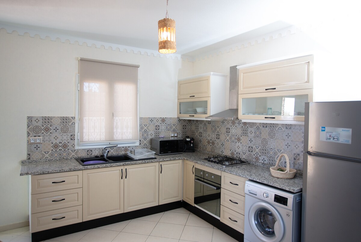 Enjoy an unforgettable stay in an air-conditioned accommodation, 2 bedrooms, 2 double beds, fully equipped to offer you optimal comfort, ideally located in an area close to all shops in Medenine. Possibility of having traditional meals delivered (couscous, slata méchouya, etc.) You are located 60 km from Djerba-Zarzis International Airport on the island of Djerba and more generally the entire southeast of Tunisia. Come visit the filming location of Star Wars "THE PHANTOM MENACE"