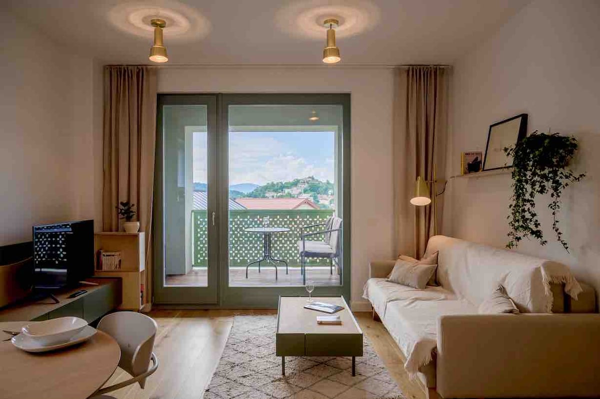 ROOM “88” – A Refined Blend of Modern Design and Comfort As part of an exclusive collection of three designer apartments, ROOM “88” seamlessly integrates contemporary aesthetics with state-of-the-art technology. Thoughtfully designed for a warm and inviting ambiance, it features plush carpets, fully adjustable LED lighting, and central heating for year-round comfort. Situated within a lush garden at the foot of Mount Tâmpa, it offers a tranquil retreat just a 5-minute walk from the forest.