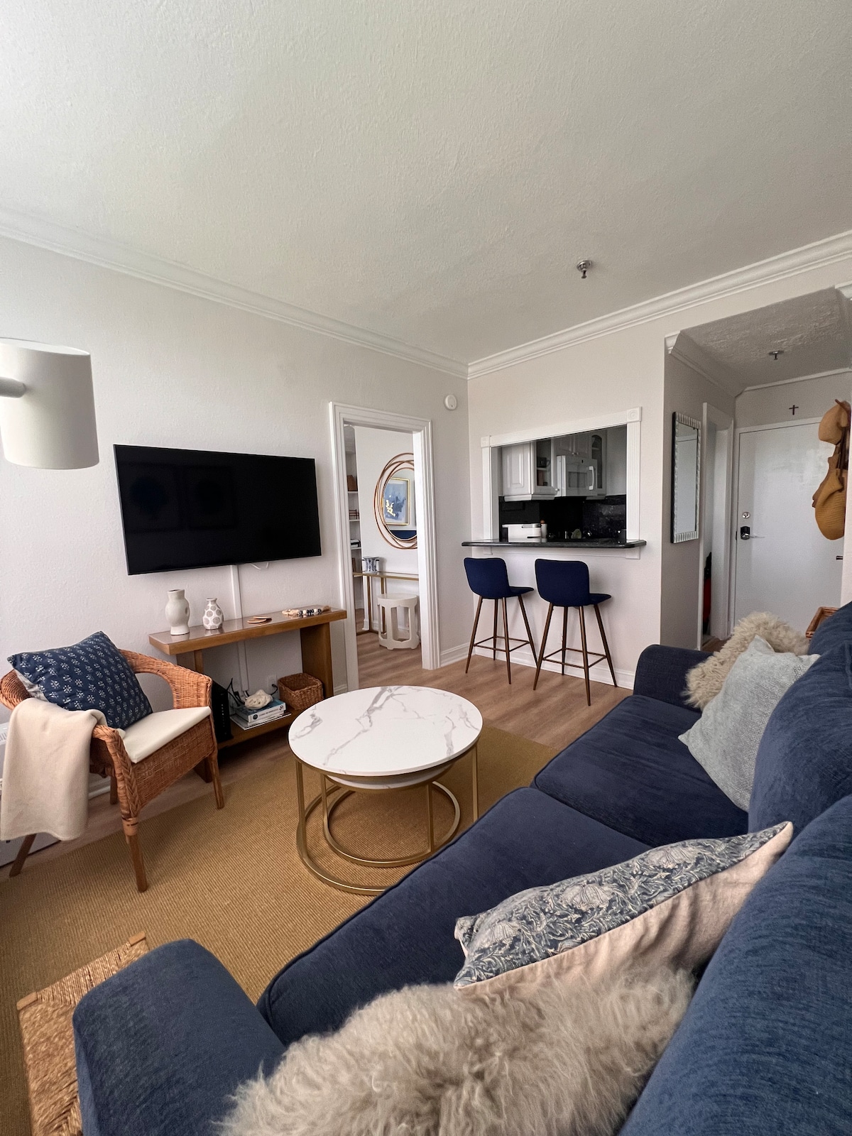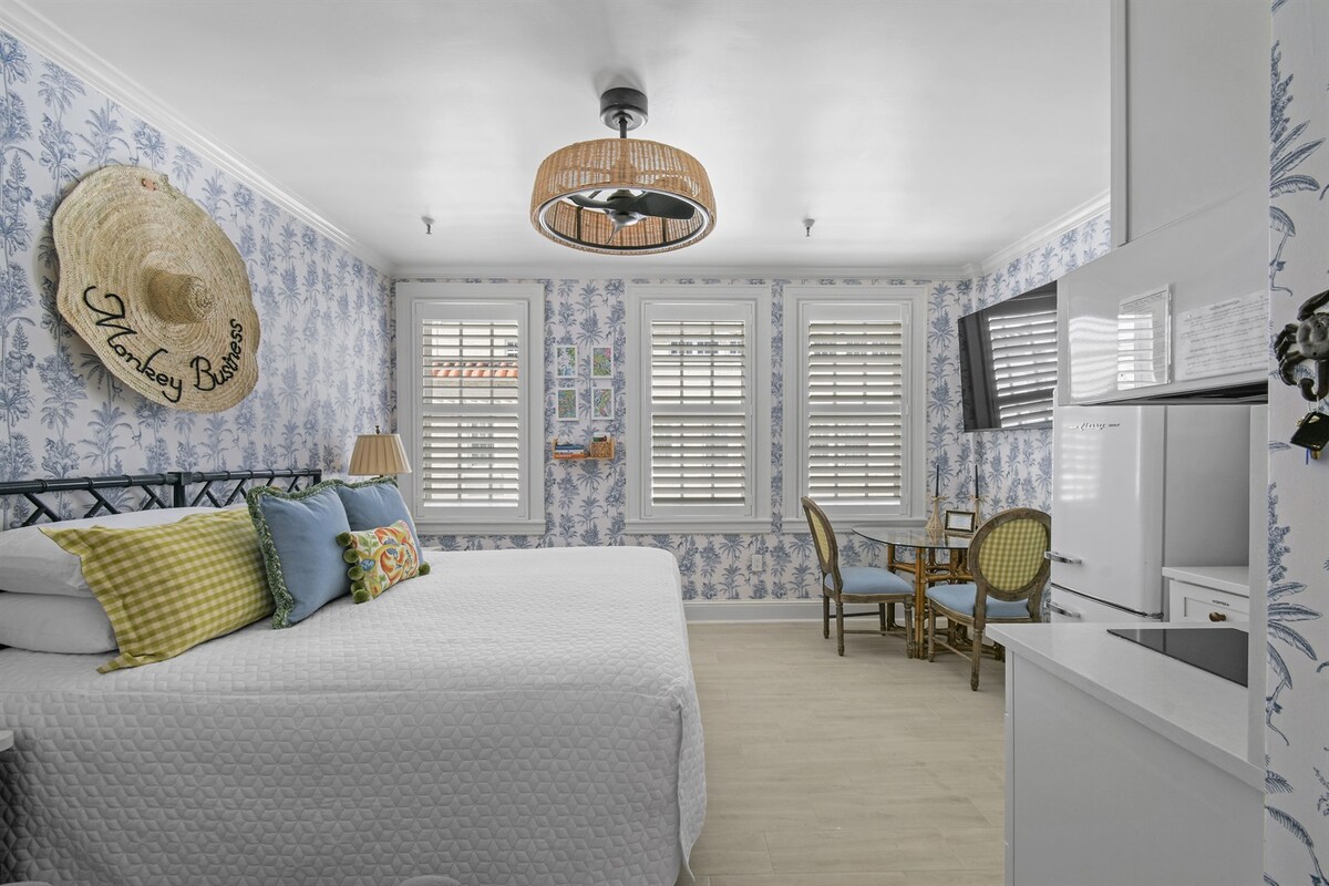 Our out-to-sea inspired studio is recently updated and jungalow-outfitted to keep you feeling all the vacation vibes from your cozy king-size bed. Made to feel like a cool comfortable escape from the nearby beach, equipped with everything you need to meal prep or work from home. Proudly 'docked' in the heart of the highly sought-after Historic Grandview Heights, walkable to Howard Park, the Convention Center, Downtown West Palm Beach and the Waterfront.
