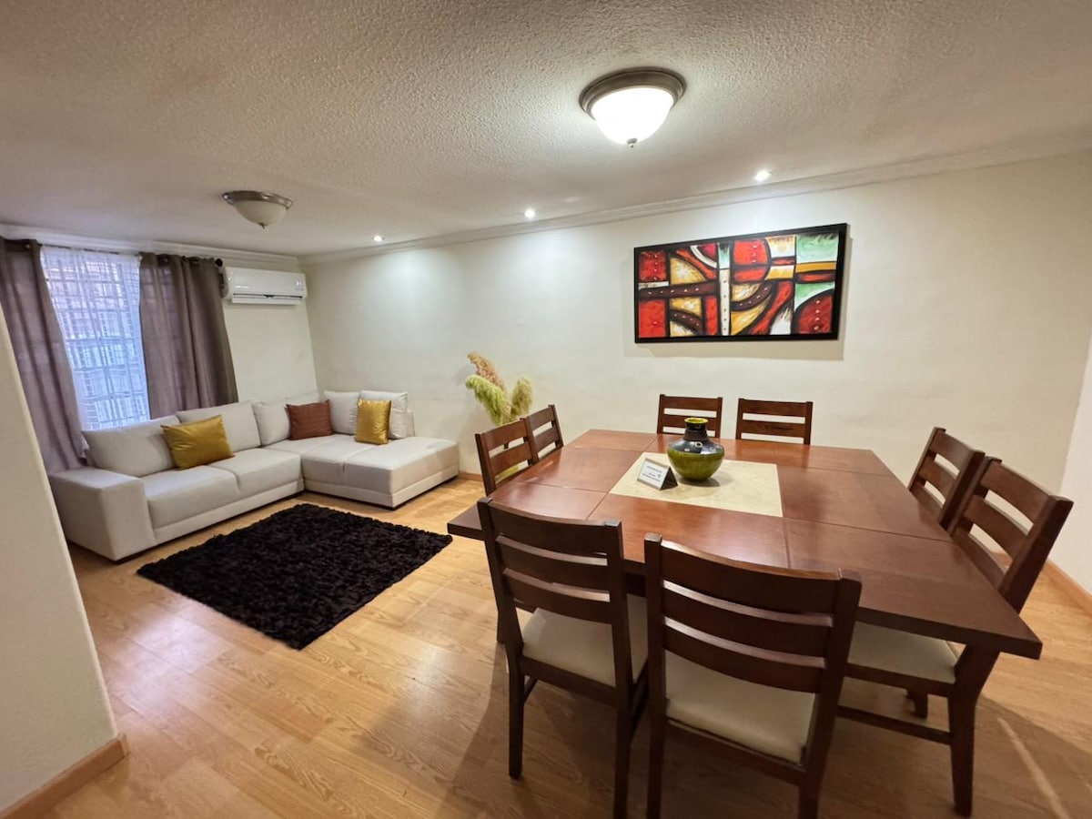 Disfruta de este alojamiento tranquilo y céntrico. Les va a encantar quedarse en mi alojamiento, por la zona donde se encuentra, por la paz que se respira en su entorno, no hay tráfico, es un lugar apto para descansar. Te sentirás como en casa. La casa está ubicada a 5 minutos aprox. del centro. A media cuadra del hospital ISSSTE, Cerca de tiendas de conveniencia como Sam's Club, Walmart, Oxxo, tiendas de abarrotes. Tiene una cochera muy amplia, le caben tres vehículos. FACTURAMOS.