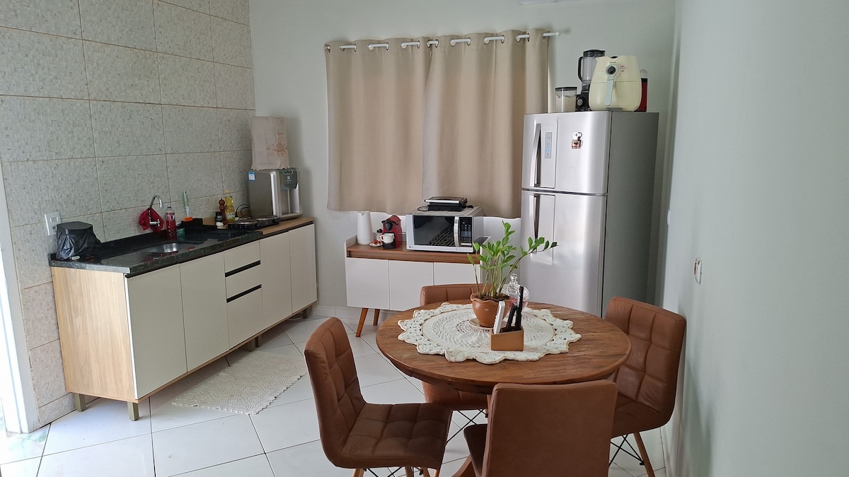 Bring the whole family to this great place with lots of room for your moment of rest and leisure. Environment with 4 en-suites and 1 external bathroom, 4 en-suites with air-conditioning, living room, dining room, gazebo with barbecue, sink, swimming pool, full kitchen including refrigerator, microwave, electric oven, blender, sandwich maker and necessary utensils. Covered garage for 2 cars and open space for 3 more. NOTE: the pool does not have a heater