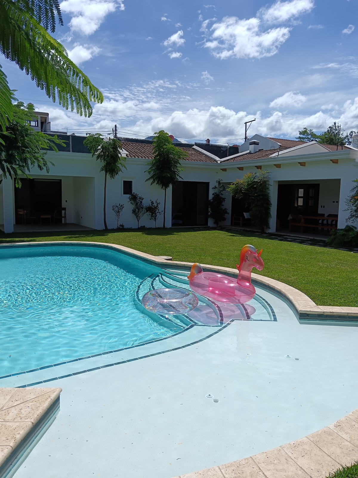 Welcome to relax and enjoy at CASA STELLA, by SOY HOST- a very cozy space due to its color palette and furniture, illuminated, warm and fresh. We highlight Stella, a beautiful dog who was in the family for many years and in honor of her the name of the house and reason for accepting pets. Located in San Pedro Las Huertas, a small town a few minutes from Antigua within a quiet and familiar condominium. Its location allows you to go to Antigua quickly and return at any time to rest.