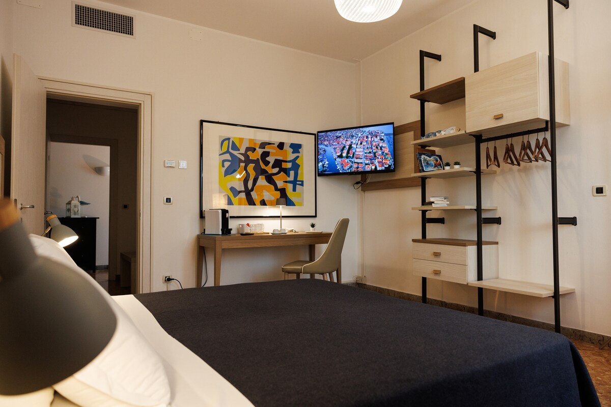 La Maison du Flaneur is located in the historic center of Chioggia, near the steamboat to Venice and the islands of the Lagoon. It is located near the bell tower with the oldest medieval clock in the world. And it is only 1 km from the beautiful beach of Sottomarina. The house is located a short walk from the municipal parking lot. On the ground floor, you can find the Hall and the bike storage. The accommodations are equipped with many comforts, including a beautiful upstairs terrace.
