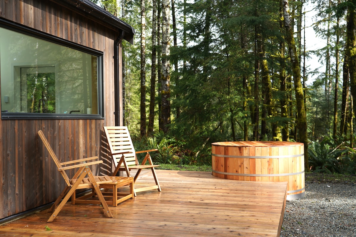 Nestled among the towering trees of Jordan River, BC, Woodshed offers a serene retreat. Clean lines, natural wood finishes, and minimalist design blend with the lush coastal forest. Expansive windows invite dappled light and frame uninterrupted views of evergreens, creating tranquility and connection to the outdoors. Designed to evoke calmness, the space balances warmth and simplicity, where the whisper of trees and distant ocean sounds set the perfect backdrop for rest and reflection.