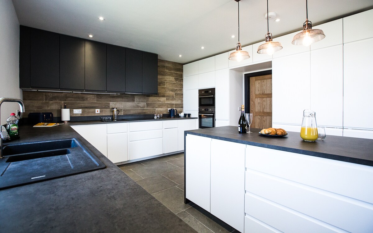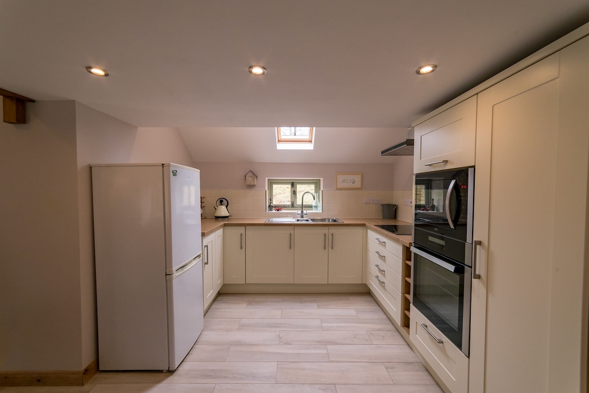 Romantic luxury loft for two on a 40-acre private estate in the Wye Valley National Landscape. Perfect for honeymooners, stargazers, proposals, anniversaries, or milestone moments. Enjoy panoramic Mork Valley views through the feature arched window, vaulted oak beams, and a cozy fire pit (logs & marshmallows incl.). Includes a generous welcome hamper and exclusive access to our dark skies, meadows, stream, and woodland. A peaceful, magical retreat with high-end, curated experiences available.