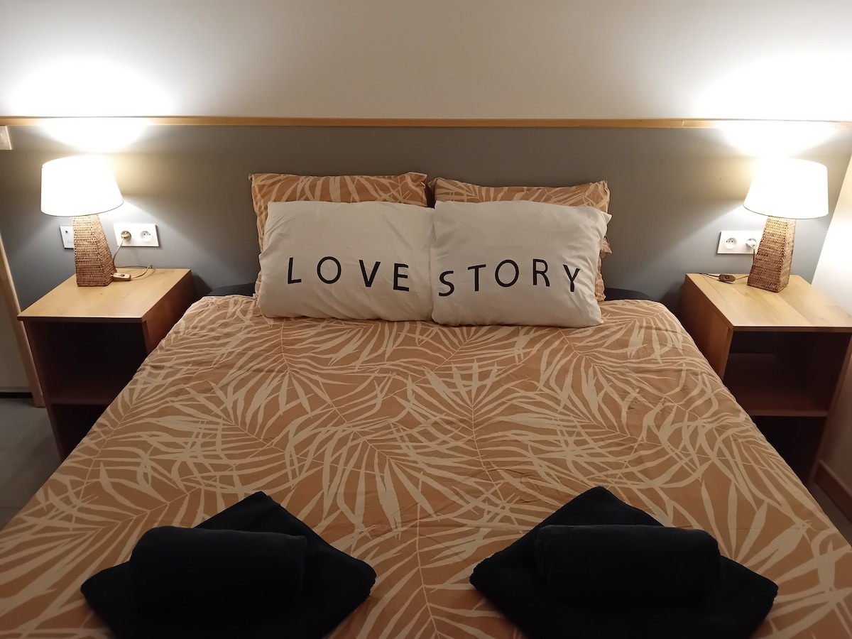 In this large accommodation on a quiet wooded lot, its southwest terrace allows you to enjoy the sun from breakfast, then a superb view. Inside, a large bedroom with high-end bedding, you have the comfort of direct access to the bathroom with walk-in shower and hammam. The bright and spacious living room awaits, BZ sofa, rollaway bed (to be requested), Satellite TV, books, games, well-equipped kitchen. Optional Spa-jacuzzi 4 people contact us