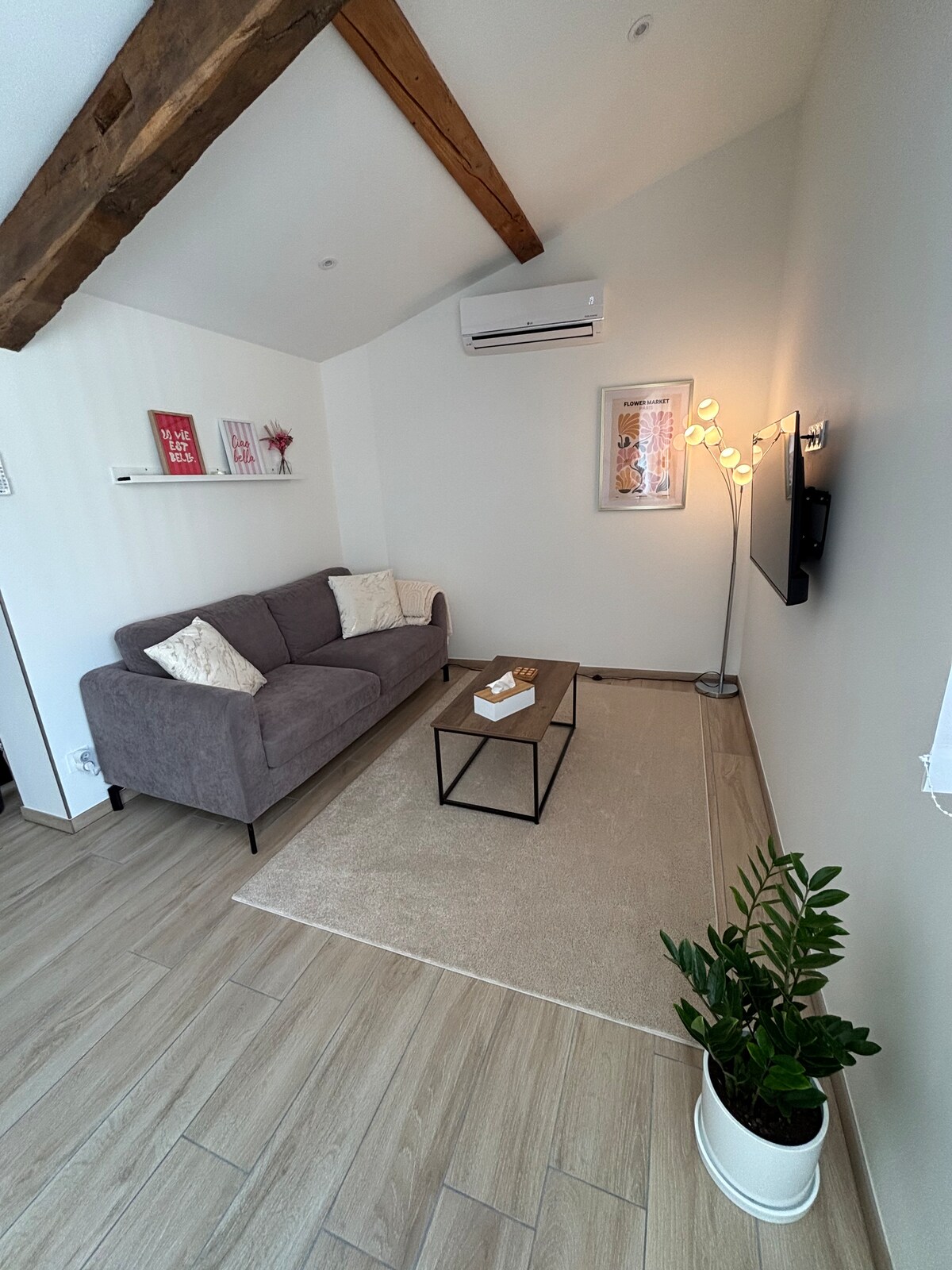 Ideal for a stop on the vacation route, for a longer stay located in Clessé, 10 km from the highway, 15 km from the train stations. In summer you have an air cooler available. You will benefit from a nice 35 square meter duplex with fully equipped kitchen. A pretty bedroom with a 160*200 bed for optimum comfort, the sofa bed is very comfortable. Refurbished, you will find shops and wine-growing restaurants within 200 m. Easy outdoor parking.