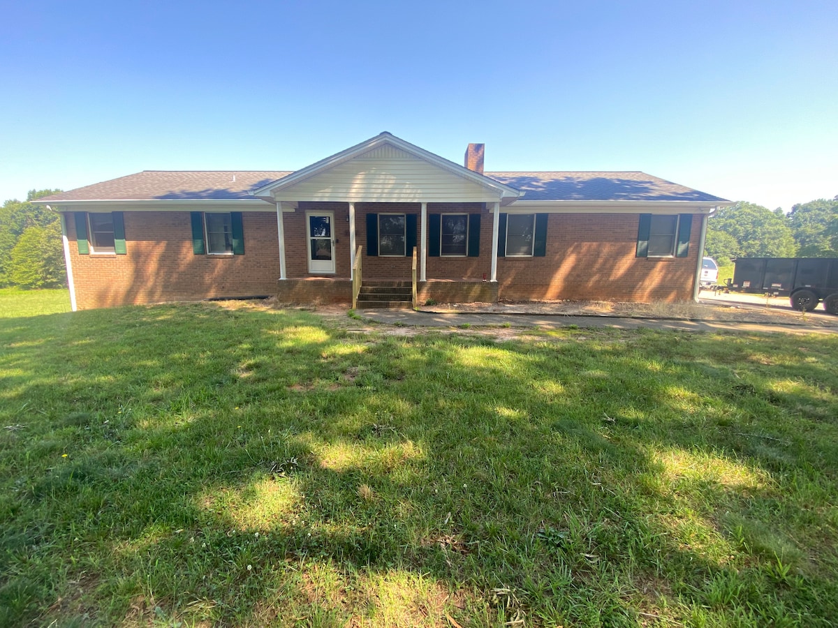 Decorated for Christmas!! Relax with the whole family at this peaceful place. Three spacious bedrooms and four and a half baths ensure that everyone has privacy.A well-stocked kitchen, large living room, dining room, sun room, and front porch allow families to enjoy time together.. Experience country living while only being a short drive from Asheville, Charlotte, Hickory, or Greenville, SC. Only 20 miles away from TIEC. House will comfortably sleep six adults, but larger families are welcome.