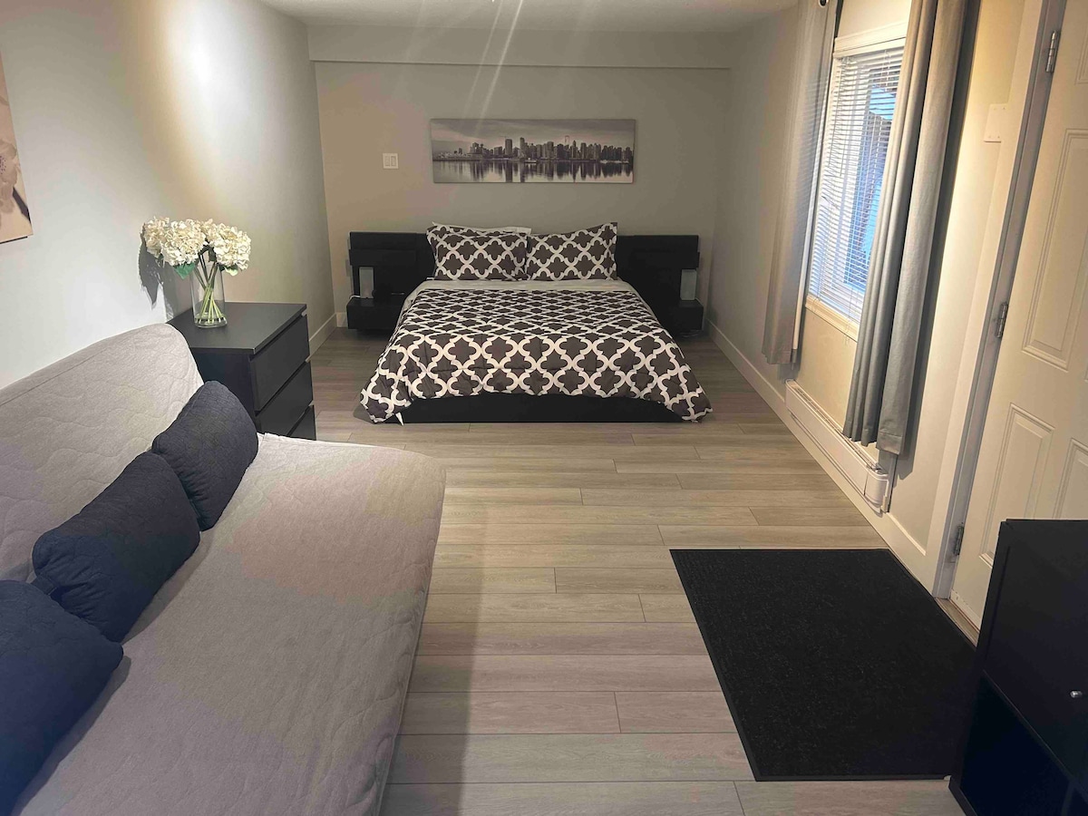 Kick back and relax at this spacious and private suite in the beautiful north shore. This suite is conveniently located minutes away from popular attractions such as the Capilano Suspension Bridge and Grouse mountain and a 20 minute bus ride away from the vibrant downtown Vancouver area and Stanley park. The suite has its own private entrance and backyard, a full kitchen, bathroom, bedroom with queen bed, dresser and TV. Free street parking available.