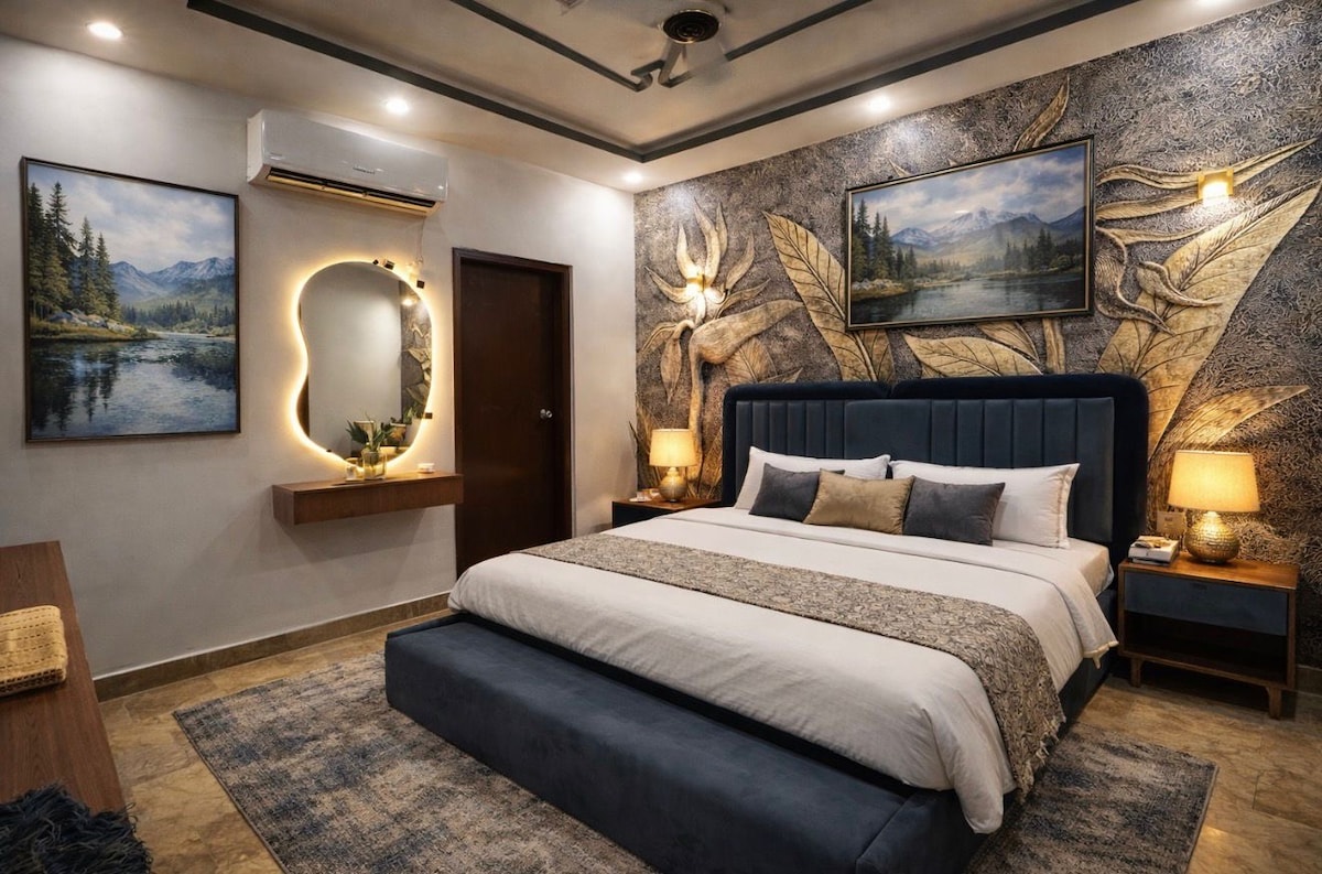 This unique place has a style all its own. 2 bed DD luxury Appartment Italian furniture with brand new appliances of fotile kitchen, centrally air conditioner, electric geysers, 55 inch smart lcd, inventor heat n cool system, luxury washrooms, excellent lighting in our all Appartment. Live Luxury life style.