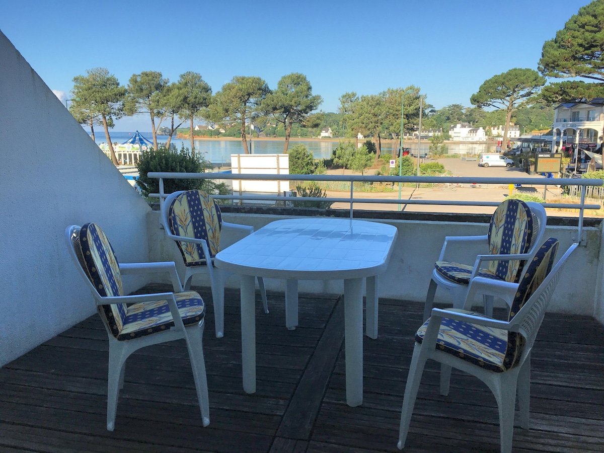 Welcome to L'IROIZH, a 30m² studio designed to offer you an unforgettable experience. Located right on the water, this haven of peace is in a quiet residence overlooking Concarneau's most beautiful beach, Les Sables Blancs. 180° sea view: enjoy an exclusive panorama every morning. Bed linen & towels provided ☺️ Independent entrance / key box Private parking space in front of the residence Ultra-fast fibre Wi-Fi: Stay connected or work from home
