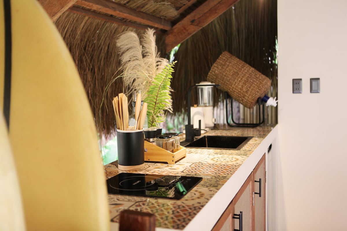 Welcome to our Island Home! Located in the heart of General Luna, This Solar powered listing offers a large fully furnished super deluxe studio! Our home is equipped with a large solar power system and battery backup, ensuring you have a reliable and comfortable stay even during Siargao’s common power outages. This Large solar system will provide you full access to everything! Air Conditioning, Starlink, water supply, water heater, lights, fans, power outlet’s, kitchen appliances!