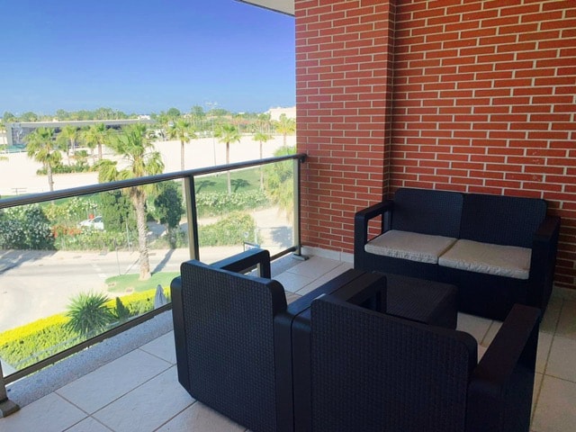 This modern and comfortable apartment is designed to provide you with a pleasant and relaxing stay. The property features a spacious 45 m² terrace with stunning views of the golf course. The apartment has two bedrooms, one of which has an en-suite bathroom for added privacy and comfort. Additionally, there is a second full bathroom. The interior is carefully equipped with everything you need to make your stay as enjoyable as possible. Moreover, it is located near the Oliva Equestrian Center