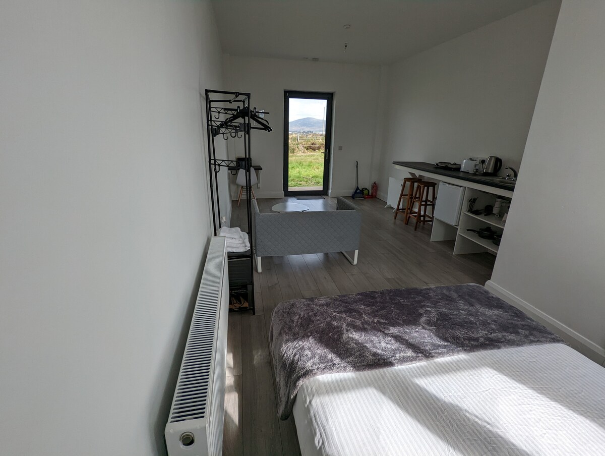 Skellig Michael & Portmagee base for solo travellers or couples wanting simple, clean, good-value accommodation. A practical (not luxury) studio ideal for guests out exploring who want a quiet place to sleep, shower and prepare light meals. Just 10–15 minutes from Portmagee harbour and Skellig Michael boat departures, and close to Valentia Island, the Ring of Kerry, beaches and coastal walks. Not suitable for groups, families, parties, or hotel-style stays.