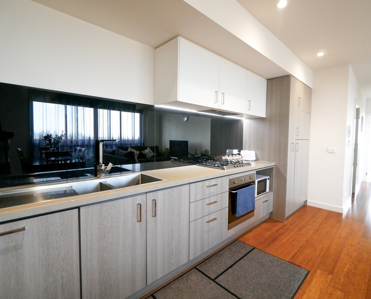 My apartment is located in the heart of Coburg and has one of the most stunning views of Melbourne you will ever experience. This is a great place from which you can experience Melbourne's famous restaurant, cafe and bar scene. Sydney Road is just a short stroll away. Self check-in via lockbox is simple, with detailed instructions provided. Trains, buses and trams are all nearby, and with private underground parking available, getting to and from the apartment is incredibly convenient.