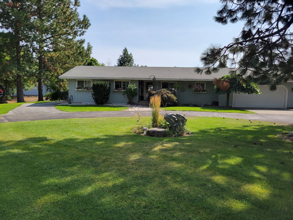 Large private suite close to downtown Coeur d'Alene. Light, spacious, quiet and very private and only a short scenic drive away from downtown. Our modern little ranch is located on 8 close in acres on a scenic well-maintained road where it is common to see elk, deer, turkey and even moose! It is an ideal location for a serene getaway or business travel but not suitable for parties. Very easy access to lake Coeur d'Alene and downtown area.
