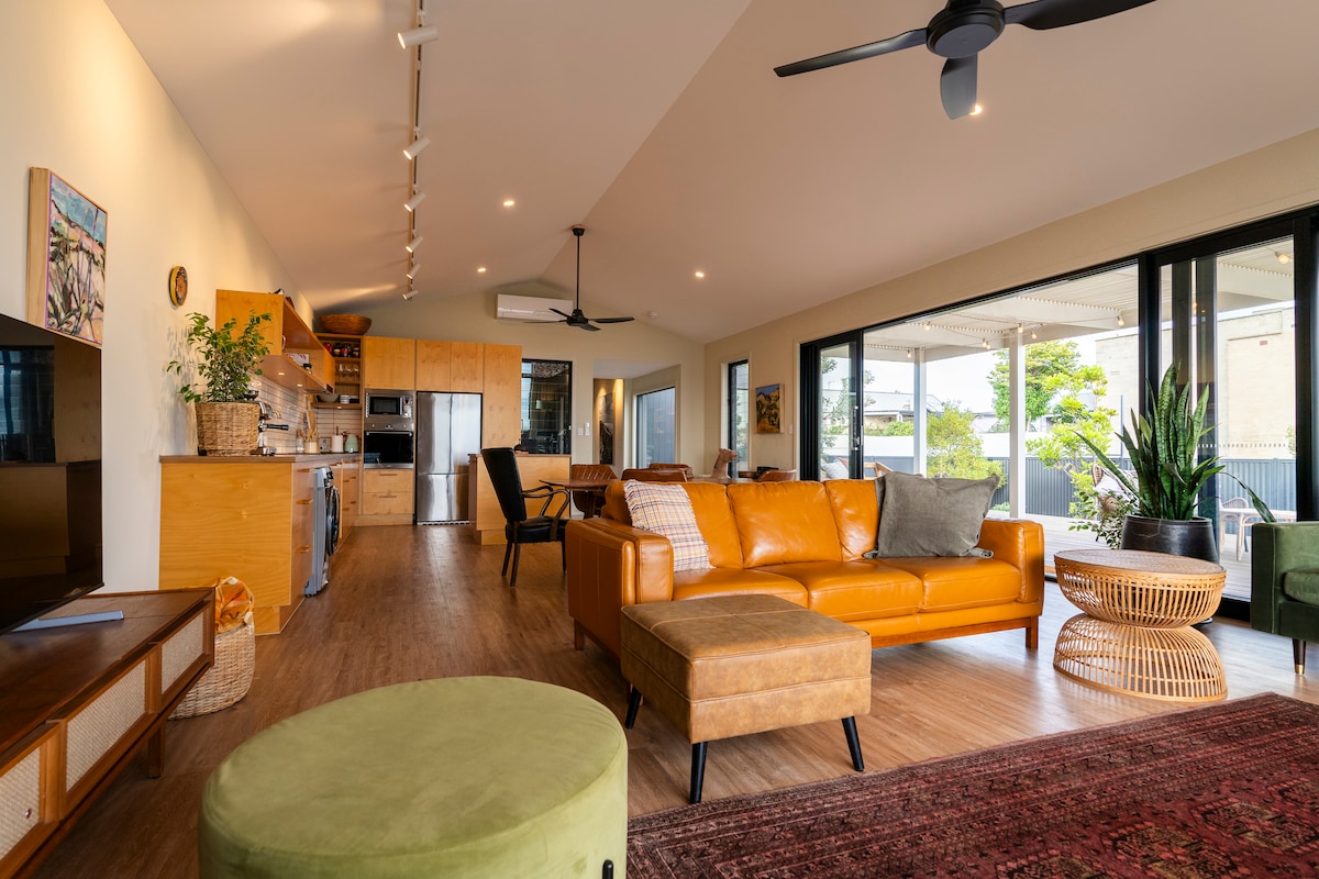 Bring the whole family to this stylish, spacious coastal home with lots of room for fun. All bedrooms feature ceiling fans. Main bedroom has an ensuite and adjoining (second) living, which is a kids oasis. The kids will find toys, books, puzzles, board games and a TV. Main bedroom has a wooden cot and porta cot also available upon request Secured backyard fencing. Linen provided along with towels. Please pack your own beach towel. No fire wood is provided.