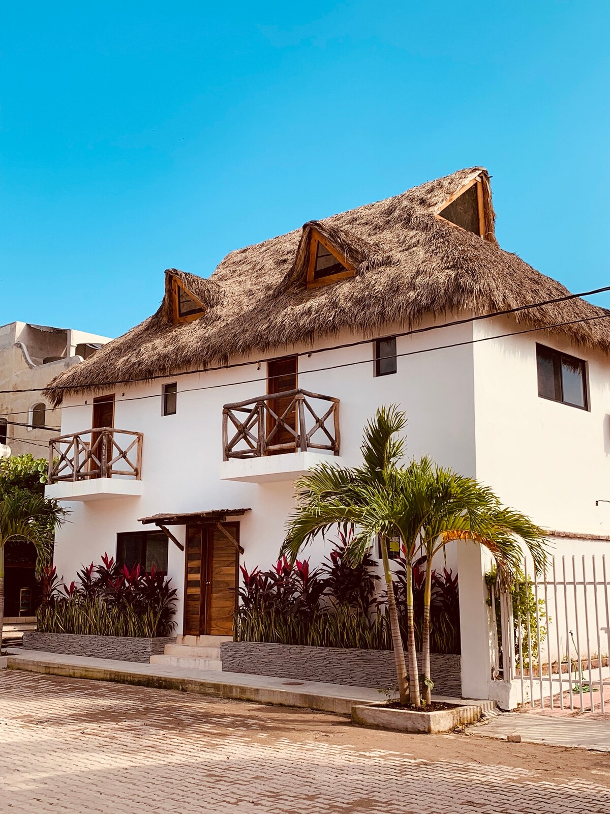 Casa Pancho Casa Pancho is located in the heart of the village of La Manzanilla, 200 meters from the beach. A small hotel with only 3 new villas, private, spacious, bright with private terrace, full and equipped kitchen. Built with palapa roofs, materials and woods from the region, Chucum floors, supplied by well water that comes from its own land, specially designed to make a perfect space to rest.