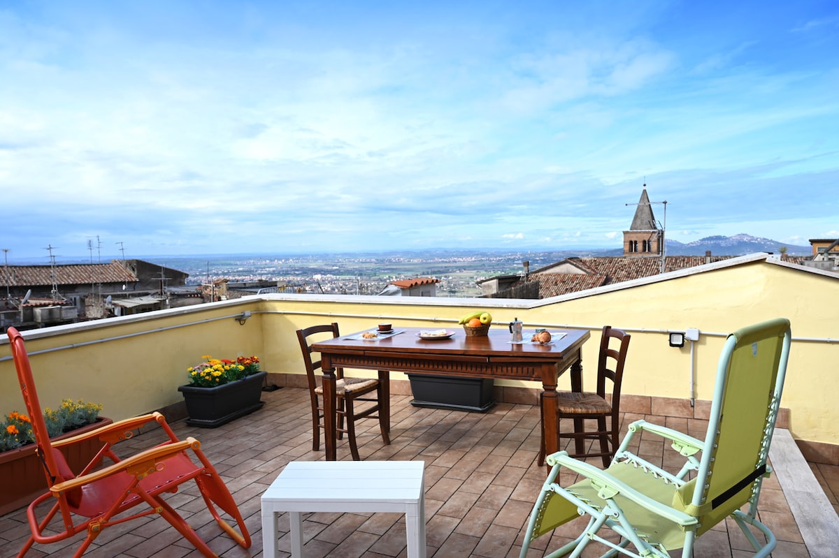 Domus Albula is a bright house. It is located on the third floor, without an elevator, in the center of Tivoli, in a quiet and safe yet lively and charming area. From here, you can walk to Villa D'Este, Villa Gregoriana, and all the main attractions of our city. Just a few steps from the entrance, there is the square with the daily fruit and vegetable market, and you can have breakfast at one of the many bars in the historic center.