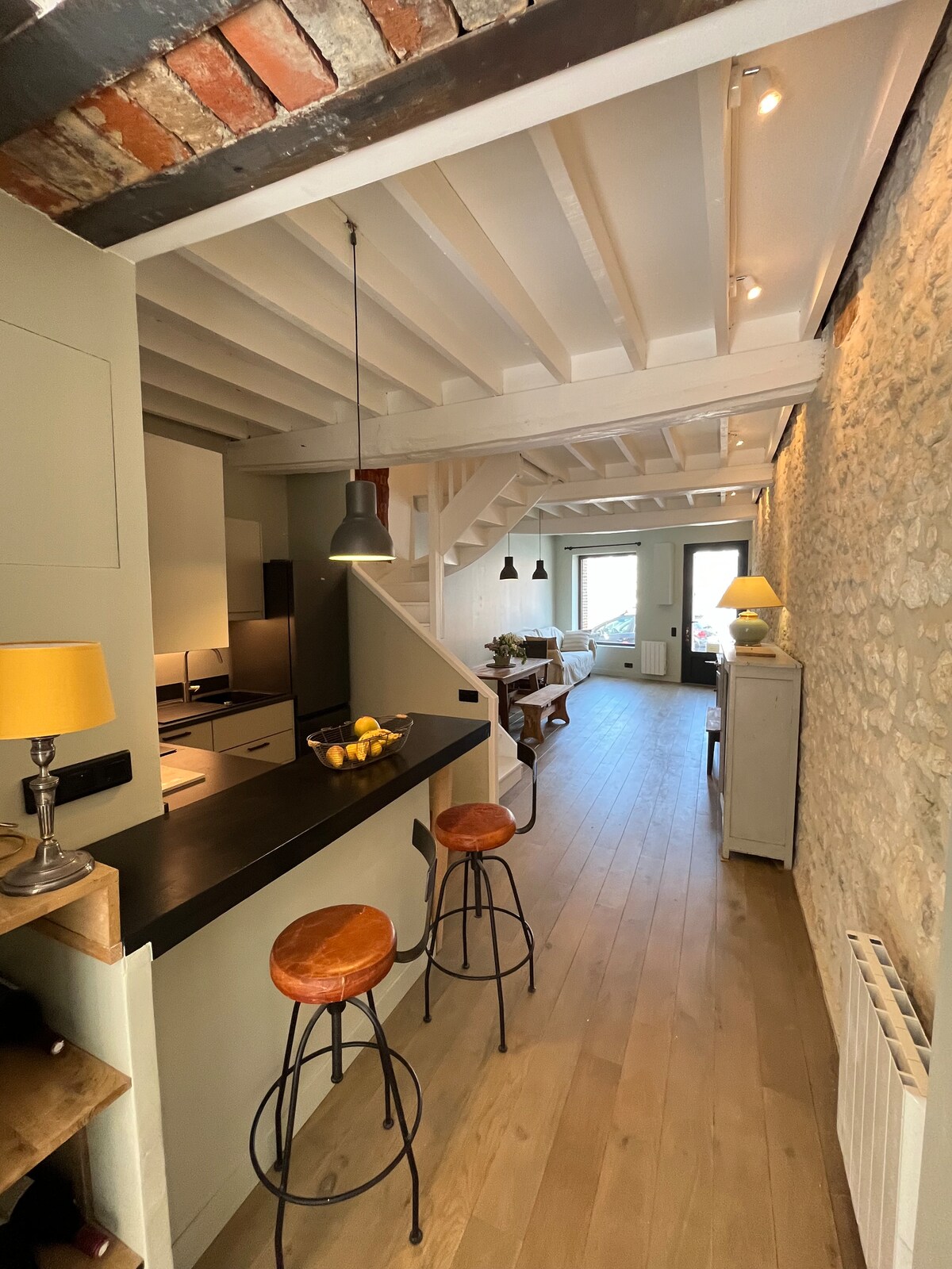 Come and rest at the farm, in the old bread oven of the renovated farmhouse. Enjoy the wood-burning stove, Scandinavian wood decor and winter garden. The library is at your disposal and you will benefit from many amenities (barbecue, garden furniture, deckchairs, dishwasher, washing machine, etc.). The sea is a stone's throw away (30-minute walk, 2 km drive) and beautiful walks on foot or by bike will allow you to discover the Pays de Caux (GR21, marked trails).
