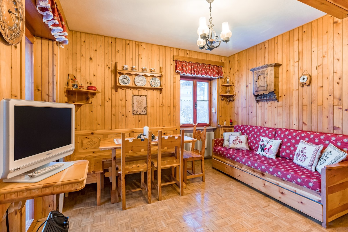 Appartamento al piano terra recentemente ristrutturato con entrata indipendente, composto da vano entrata, salotto con divano letto e cucina con stufa a pellet, camera matrimoniale, ampio bagno con lavatrice, finestrato e dispone di una grande doccia. La struttura gode di molta luce ed è arredato in stile rustico con perline a vista, tipico della montagna. L'appartamento è dotato di tutto l'occorrente. CIN IT030081B5YKUCS5RC