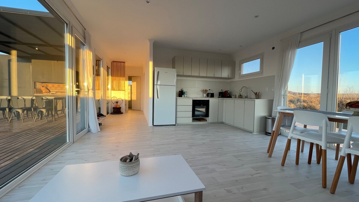 Welcome to our home in Chocón Medio. Located on the shores of Lake Exequiel Ramos Mexía, with sandy beaches and surrounded by nature, it offers tranquility and comfort. 100 km from Neuquén and 330 km from Bariloche, it is ideal for families, with beautiful views and a cozy atmosphere. The neighborhood has a beach club, children's playground, grills, sports courts, a mini-market, and private security. Enjoy a unique and relaxing Patagonian getaway!