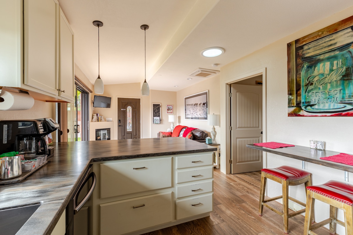 Nestled between National Forest and sweeping Red Rock views, our Casita room detached from the main house is the is the perfect location to getaway and relax, star gaze, and enjoy nature right outside your door. Cozy cabin vibes, Bell Rock view, premium linens, en-suite bathroom, shower and AC. Room includes: Smart TV, Wi-Fi, Toiletries, breakfast bar, Microwave, Mini Fridge, Board Games, Bike Storage, access to bonus Garage kitchen, Hiking Guides, Maps, Recreation Pass, and MORE!