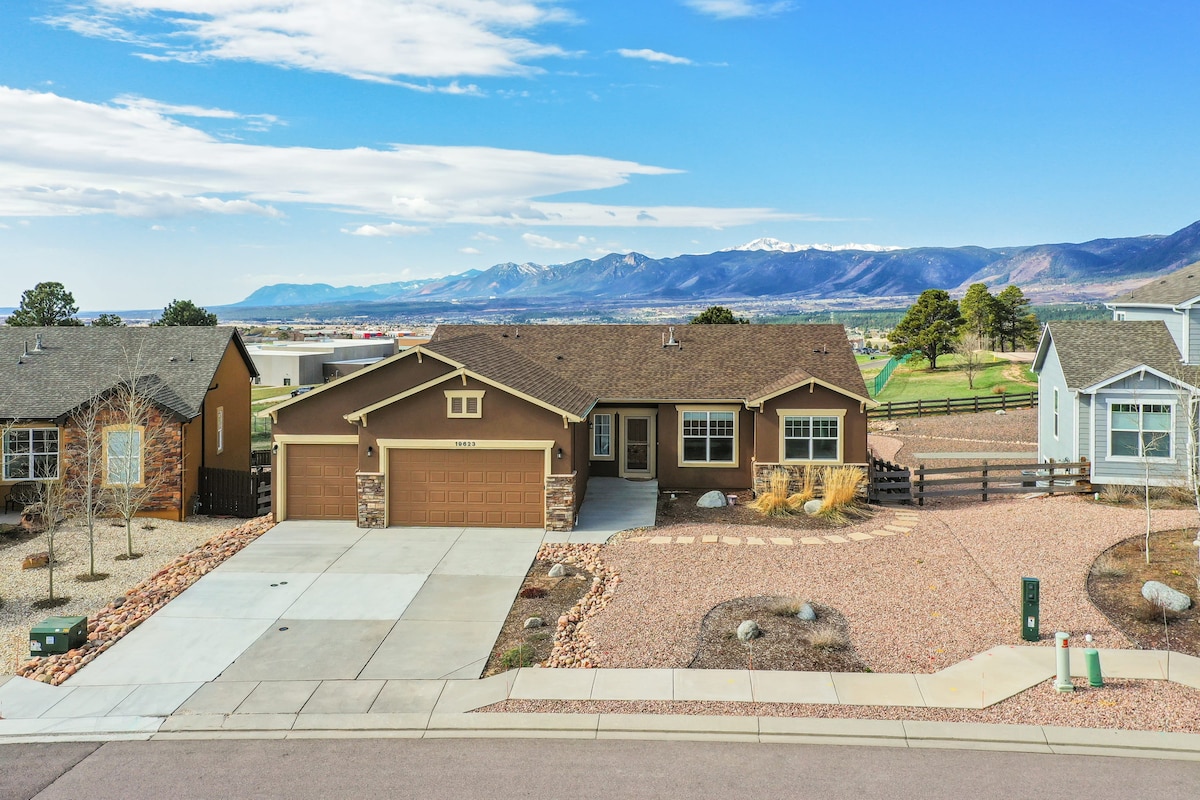 Welcome to Mountain Breeze! Step into luxury at Mountain Breeze - our newly-built, upscale Monument home, featuring a walkout basement with a wet bar, air hockey table, and AMAZING views of the Rocky Mountains. ✈️ 10 mins to USAFA 🏙️ 25 mins to downtown Colorado Springs and Garden of the Gods 🕹️ Air Hockey & Poker Table 🏞️ Breathtaking mountain scenery 🍽️ Variety of restaurants, bars, and shops nearby 🚀 Fast WiFi w/ workspace and desk Your getaway awaits!