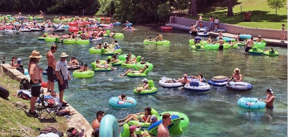 Tubing is a serious pastime here. Most folks start downriver from Wurstfest Grounds (home to the annual all-things-German festival in November) and float down to the Last Tuber’s Exit. Bring your own tube, or rent from one of the local outfitters, who offer every variety necessary and also offer air conditioned bus rides back to your starting spot.